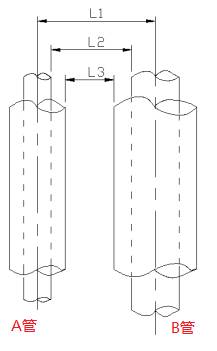 A/B两管裸管净距L2(mm):1000-789+120+110=441