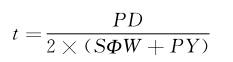 修正系数Y=0.4, 纵向焊接接头系数E=1.0。腐蚀余量c=1.59mm。